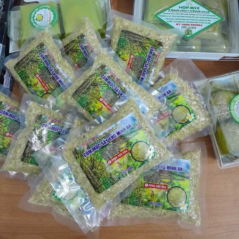- Hương vị tự nhiên : Cốm sấy khô được giữ nguyên độ thơm dẻo, màu sác xanh nhẹ tự nhiên của lúa nếp non.